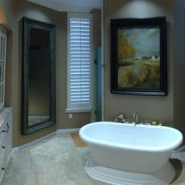 We design bathrooms that offer relaxation, comfort, and luxury finishes.