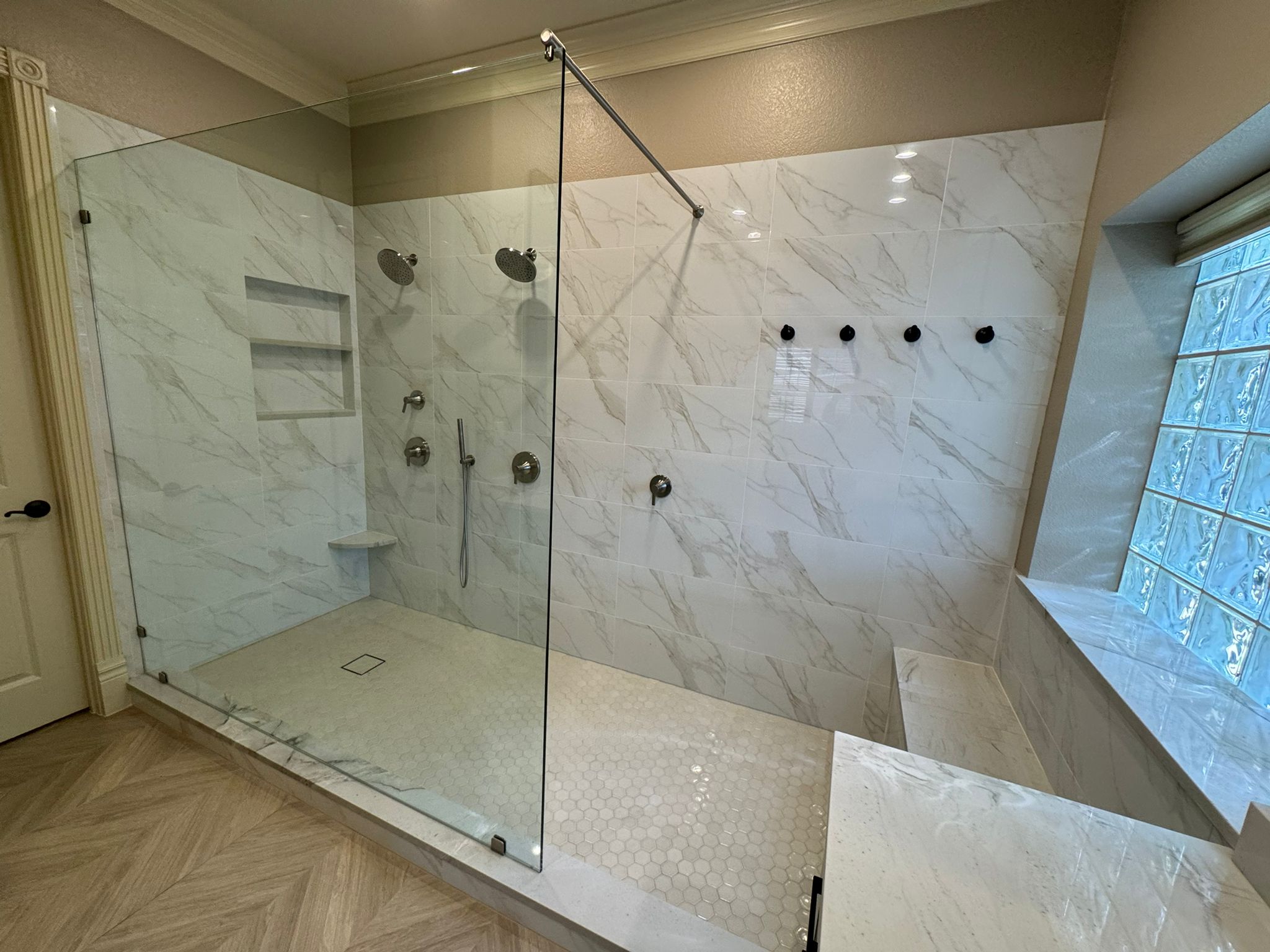 For this Plano master bathroom remodel, our client desired a modern, spa-like retreat without the bulk of a traditional bathtub. We completely removed the tub and designed a sleek, spacious walk-in shower that maximizes both style and functionality. The new shower features frameless glass, premium tile finishes, and custom-built storage niches, creating a clean, open, and inviting layout.
